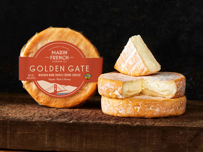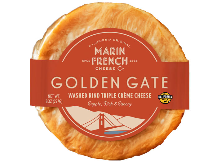 Petaluma, Calif. — Marin French Cheese Co. introduces Golden Gate, the first in its new line of premium cheeses, handcrafted at the country’s oldest cheese company. This washed-rind, triple crème cheese is aptly named for the golden color of the cheese as well as the Golden Gate Bridge, the iconic gateway to Marin County where the historic creamery is located. The unique cultures naturally present in California’s coastal air result in an artisan cheese with a true sense of place.