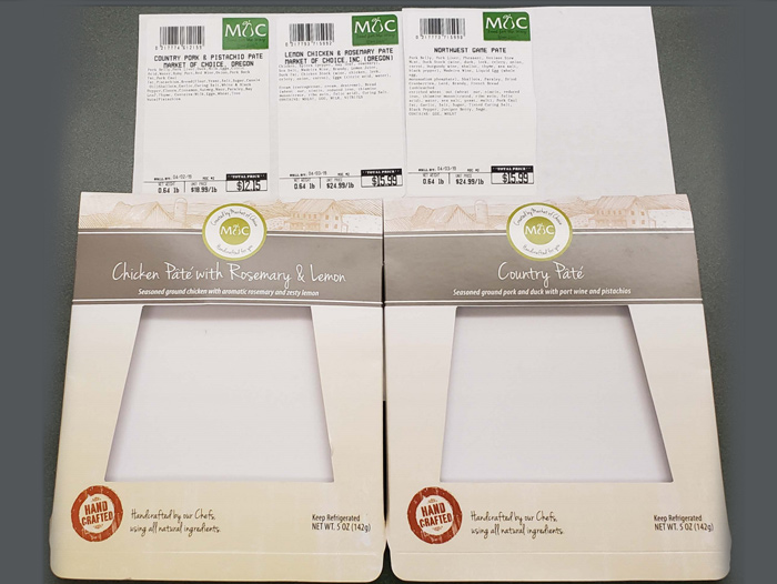 WASHINGTON– Market of Choice, Inc., an Eugene, Ore. establishment, is recalling approximately 1,094 pounds of pork and poultry pâté products due to misbranding and undeclared allergens, the U.S. Department of Agriculture’s Food Safety and Inspection Service (FSIS) announced today. The products contain milk and soy, known allergens, which are not declared on the product label.
