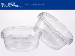 Milliken & Company’s breakthrough packaging material – NX™ UltraClear polypropylene (PP) – is the first plastic to combine glass-like clarity for improved aesthetics with heat resistance for heating and reheating. Unlike traditional clear plastics such as polyethylene terephthalate (PET), NX UltraClear PP is engineered to handle hot-fill applications, warming under heat lamps and microwaving, so consumers can reheat foods or heat semi-prepared items without transferring them to a different container. This versatile material is equally well suited for packaging cold foods such as salads and fresh deli items.