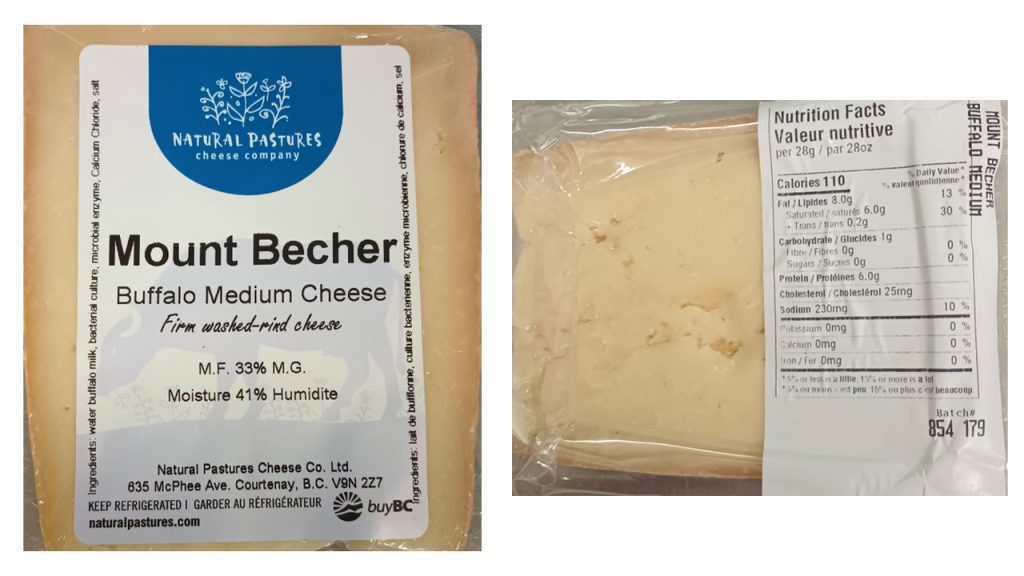 Natural Pastures Cheese Company Brand Mount Becher Buffalo Medium Cheese Recalled
