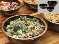 The metallic-look Utah Copper Melamine Displayware line includes a variety of durable pieces that make an eye-catching statement—select from rectangular, round and oval platters; round bowls; round pots; and a cake dome. Use multiple pieces as a set for maximum impact or choose a single piece as an accent.