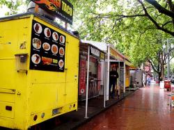 Lately it's also enough time for a hungry Manhattanite to get a substantial grass-fed beef hamburger, sourced straight from the La Cense ranch in Montana to its New York "Beef Burger Truck"; an iced, rainforest-friendly coffee from the Street Sweets truck, served up in a clear but biodegradable cup; or a cone of whole-bean vanilla ice cream made from hormone-free dairy and pure cane sugar, from the Van Leeuwen Ice Cream truck. And still have change left over from a $20.