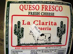 Consumers who have purchased the La Clarita Queseria Queso Fresco Fresh Cheese should return the product to the place of purchase or discard it.