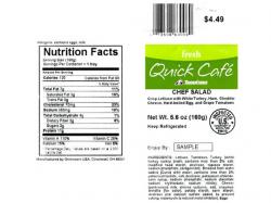 5.6 oz. plastic containers of “Thornton’s Quick Café Chef Salad” with an “Enjoy By” date through“2/4/2012”, that bear the establishment number “P-38518” inside the USDA mark of inspection The products were distributed to retail establishments in Illinois, Indiana, Kentucky, Ohio, and Tennessee.