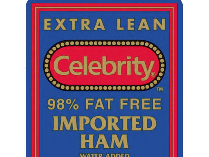 - 12-lb. plastic film vacuum package of “Celebrity EXTRA LEAN IMPORTED HAM 98% FAT FREE” with product codes “20309 11 – 91”, “20309 21 – 91”, “20309 31 – 91”, “20309 41 – 91” or “20309 51 – 91” printed on the side of the packaging.