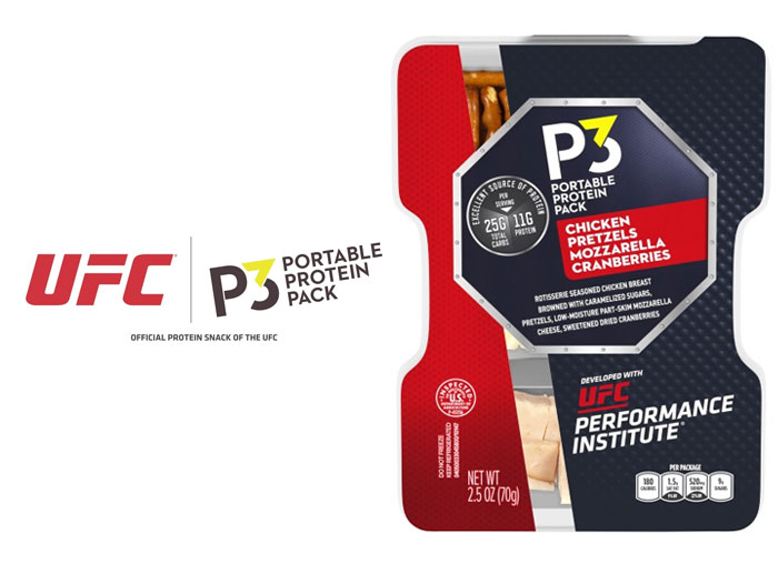 The latest P3 is designed for active consumers looking for a protein-rich snack and features rotisserie-seasoned chicken, pretzels, mozzarella cheese and dried cranberries. The newest P3 is the first of its kind to be co-developed with nutritionists from the UFC Performance Institute® and uses a 2-to-1 ratio of carbohydrates to protein for a better way to fuel workouts. Each pack contains 11 grams of protein and 25 grams of carbohydrates.