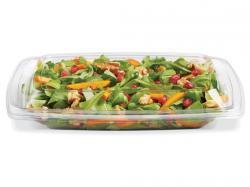 The contemporary packaging creates instant shelf impact with a sleek lid and base geometry that has no protruding tabs for a smooth, clean look that makes food the focus. The smart lid design allows for easy opening and closing with a tight inside lid seal providing a nice snap closure for high leak resistance. The sustainable containers are perfect for everything from culinary masterpieces to everyday Caesar salads, baked goods, sandwiches and wraps.