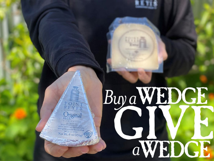 “The outpouring of support and donations from our agricultural community is incredibly heartening, and the creative ways people are stepping up to nourish those in need is just incredible” said Steve Linkhart, Director of the Farm to Family program at the California Association of Food Banks. “The Buy a Wedge / GIVE a Wedge program is a perfect example of care kindness, and creativity. We are so grateful to Point Reyes Farmstead Cheese for their donations of cheese to California’s food banks. We firmly believe that together we can get through this pandemic.”