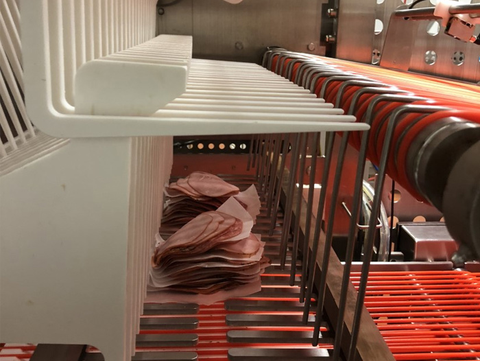 As part of the solution, the company purchased two high-volume slicers, which gave them the ability to deliver portion-control sizes. To take advantage of this feature, though, their process line also needed an interleaver.