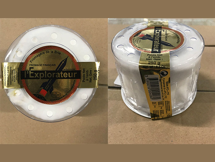 L’Explorateur cheese has been packaged in clear plastic containers and is sold in the form of small, circular wheels in 250g quantities. The sell by dates on the package include May 7, 2019 and May 14, 2019. Product lot codes are 7742-H 057 and 77432-H 064. Cheese labeled as such should be thrown away immediately.