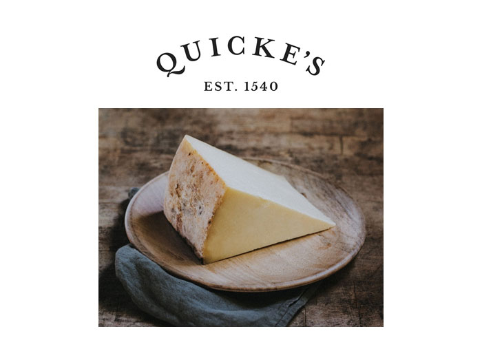 Nurturing the family’s land for 14 generations, Quicke’s crafts outstanding cheese from an idyllic corner of Devon. Understanding that great cheesemaking is an art, which begins out in the fields, Quicke’s farmers carefully manage their ancient pastures, feeding specially-bred cows on lush grass year-round so that they give the very best milk, a true expression of the landscape from which it came. The milk is collected each morning using time-honoured methods and each truckle is handmade, cloth-bound and slow-matured in the cool quiet of the farm’s maturing rooms.