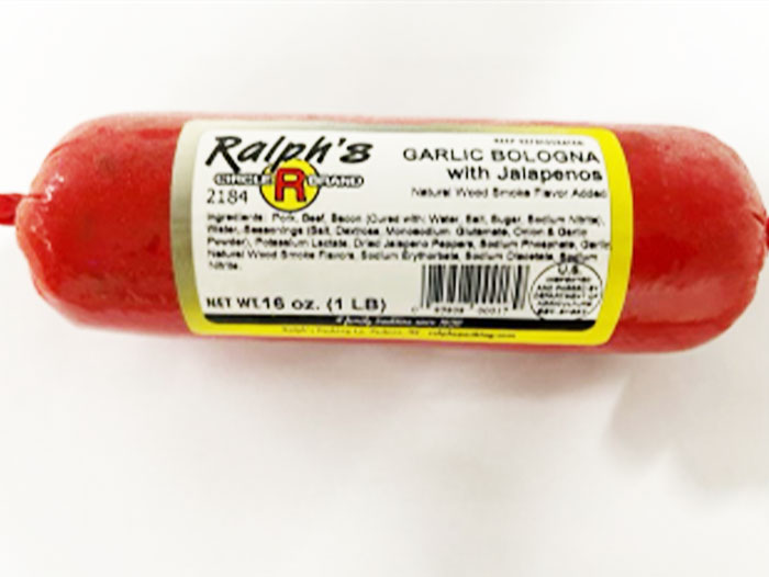 - 16-oz. (1 LB) or various weight (larger than 16-oz.) vacuum-sealed chubs of “Ralph’s CIRCLE R BRAND GARLIC BOLOGNA with Jalapenos” with lot codes 0804, 1074, 1224, 1233, 1354, 2184, and 3374.