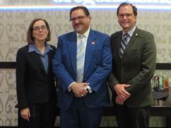 (Pictured Left) Owner David Gremmels with Secretary of State: Kate Brown and Creative Director/Founder of Metropolitan Group: Eric Friedenwald-Fishman after being announced #3 Best Green Company to Work for in Oregon