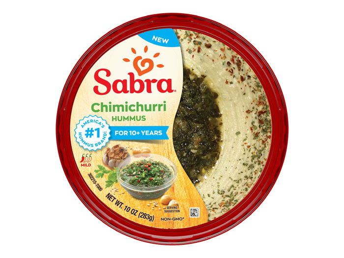 Sabra Chimichurri Hummus: Inspired by the culinary traditions of South America, this delicious dip brings together zesty, Argentinian-inspired flavors with the goodness of hummus for a distinctly flavorful experience. Chimichurri sauce, known for its vibrant blend of herbs, garlic, and white wine vinegar, takes center stage in this bold and creamy hummus.