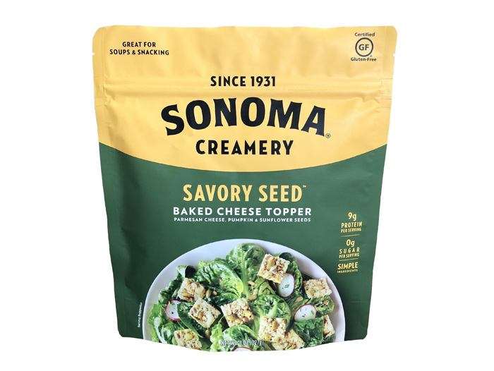 SAN FRANCISCO– Sonoma® Savory Seed™ Baked Cheese Toppers are now available at select Northern California Costco buildings. Sonoma® Savory Seed Toppers are the newest product from Sonoma Creamery, complementing their other snack product lines, which include Sonoma® Cheese Crisp Bars and Sonoma® Cheese Crisps.