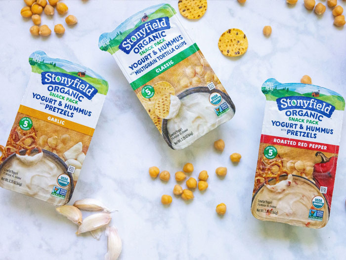 Stonyfield Organic Expands Snack Pack Line, Introduces New Savory Flavors featuring Lowfat Yogurt and Hummus