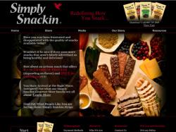 Healthy Snackin is an e-commerce based company founded in 2009 by husband and wife duo Tom and Sue Kramlich. Tom and Sue utilized their experience with specialty meat products to create Healthy Snackin's Simply Snackin line of gourmet dried meat snacks . Healthy Snackin uses only lean natural beef sirloin or chicken breast meat and a combination of spices, fruits and cheeses teamed with a leisurely roasting process. The meat snacks are all made without MSG, Trans Fats or fillers, are only 50 calories and feature six flavors, four of which are gluten free including beef sirloin with cranberries & blueberries, and chicken breast with black bean salsa and Wisconsin cheddar cheese.