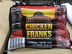- 12-oz. vacuum-packed packages containing 10 franks of “Harvest Creek CHICKEN FRANKS” with “Best by/Use by” dates of 12/07/2017 with lot code 93023.