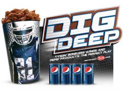 Boneless wings are a football fan favorite, and the "Dig Deep" promotion offers savings on game-day party favorites, featuring a coupon for $2.50 off the purchase of 2 lbs. or more of Tyson Boneless Wings from the grocer's deli and (1) Pepsi® 8-pack 12 oz. plastic bottles or 8-pack 7.5 oz. mini cans.