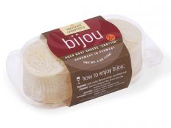 On the market since 2006, Bijou is French for “jewel” and epitomizes all that is special about goats’ milk and the making and caring for a small cheese. This geotrichum-rinded cheese has a unique sweet and yeasty flavor. Made with fresh pasteurized goats’ milk from family farms, Bijou curd coagulates overnight, drains in cheese cloth and is then shaped into little buttons. Dried, and ripened for one week, Bijou evolves with time, gaining a sharpness and complexity after thirty days.