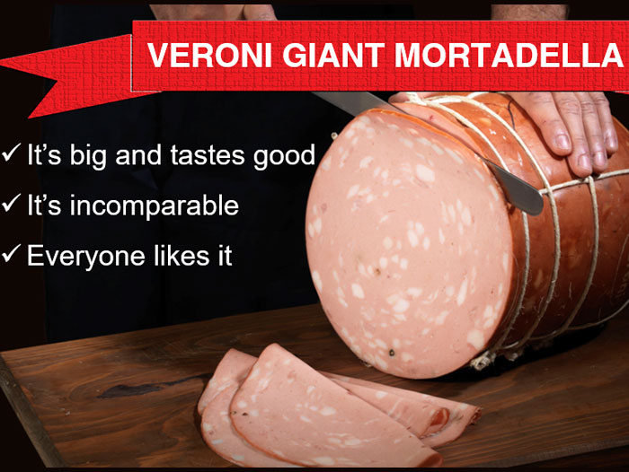 Even today, the secret and highly guarded recipe for Veroni’s giant mortadellas is one of tradition: high quality raw materials, processed with a “know-how” handed down from generation to generation within the Veroni family. Find out more about this tradition here: http://www.veroni.it/veroni-mortadella-history/