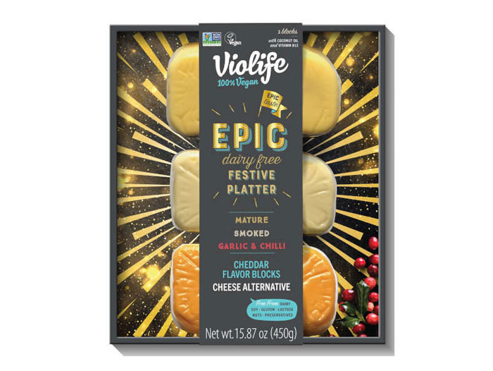 The Violife EPIC Dairy Free Festive Platter includes three delicious blocks, each free from common allergens (like dairy, nuts, soy, lactose and gluten), so you can treat everyone this holiday season – no matter what their dietary preference or requirements.