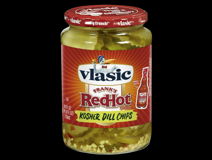 The new Vlasic Frank’s RedHot pickles will be available in three varieties: a 16 oz. jar of Kosher Dill Wholes, and 24 oz. jars of Kosher Dill Chips and Kosher Dill Spears. Each features a custom flavor blend that perfectly pairs Frank’s cayenne pepper heat with Vlasic’s garlic dill notes. Frank’s RedHot Original Cayenne Pepper sauce is used in the brine for an authentic taste and craveable heat experience that spicy fans will love.