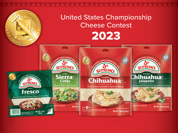 “We are proud to have been recognized at the 2023 United States Championship Cheese Contest® and are honored to have received seven awards in four different categories. This remarkable achievement is a direct reflection of the passion and commitment our team demonstrates every day, as well as the superior quality of our products,” said Gilberto Villaseñor II, Chief Visionary Officer of V&V Supremo® Foods, Inc.