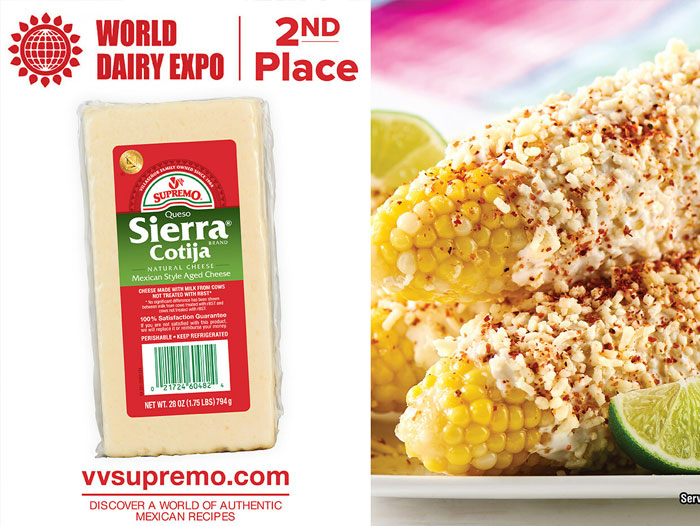 CHICAGO – Award-winning producer of authentic Mexican cheeses, creams and chorizo, V&V SUPREMO FOODS, INC., is thrilled to announce that its Sierra® Brand Cotija Cheese has won second place in the Latin American Cheese class at the 2023 World Dairy Expo Championship Dairy Product Contest. With a remarkable score of 99.30, the company’s Sierra® Brand Cotija Cheese was among the top contenders in a national competition that spanned 96 product classes and received entries from 43 states.