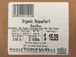 The recalled cheese was cut and packaged in clear plastic wrap and sold with Whole Foods Market scale labels. Whole Foods Market decided to recall the cheese after routine sampling conducted by the FDA found Listeria Monocytogenes in a whole, uncut wheel of the cheese. The Papillon Organic Roquefort cheese product can be identified by the scale label that begins with PLU 029536. All sell by dates are affected.
