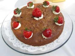 When cooled, garnish with whole strawberries and mascarpone cheese. Additional serving ideas, serve with ice cream or sprinkle with powdered sugar and dollop with whipped cream.