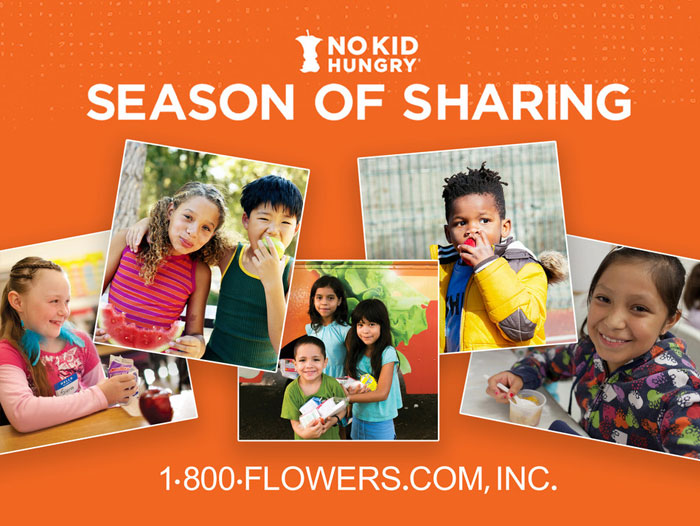 “Together with No Kid Hungry, we want to change the painful truth that millions of children in America are living with hunger,” said Chris McCann, CEO of 1-800-FLOWERS.COM, Inc. “During this season of sharing, we look forward to raising awareness about the issue of food insecurity and engaging our customers to help ensure that kids across the country have access to the food they need.”