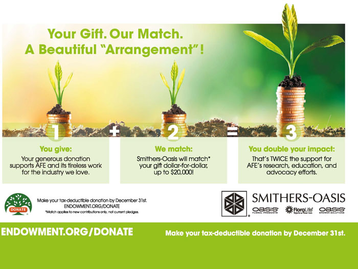 Today, you have the opportunity to support the Endowment, even MORE, thanks to the Matching Gift AFE Challenge issued by Smithers-Oasis/FLORALIFE®.