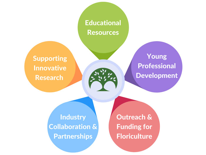 To be the trusted source and catalyst for floriculture advancement through funding of innovative research, scholarships, internships, and educational grants that best serve the dynamic needs and demographics of all industry sectors.