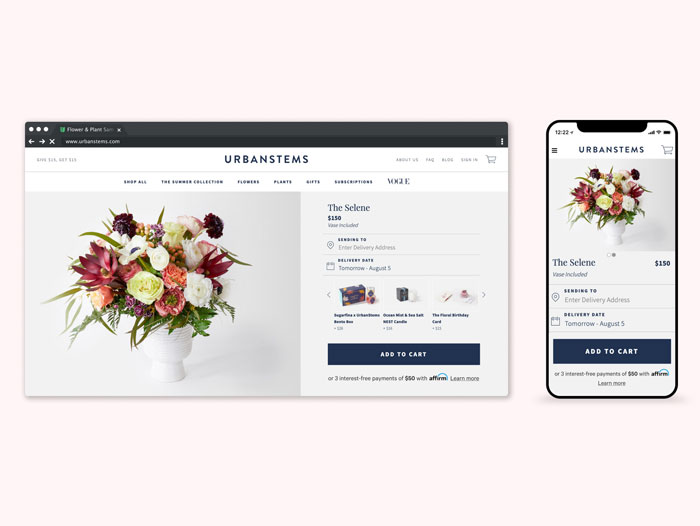 Shoppers can pay with Affirm on purchases over $50 at checkout on UrbanStems today.