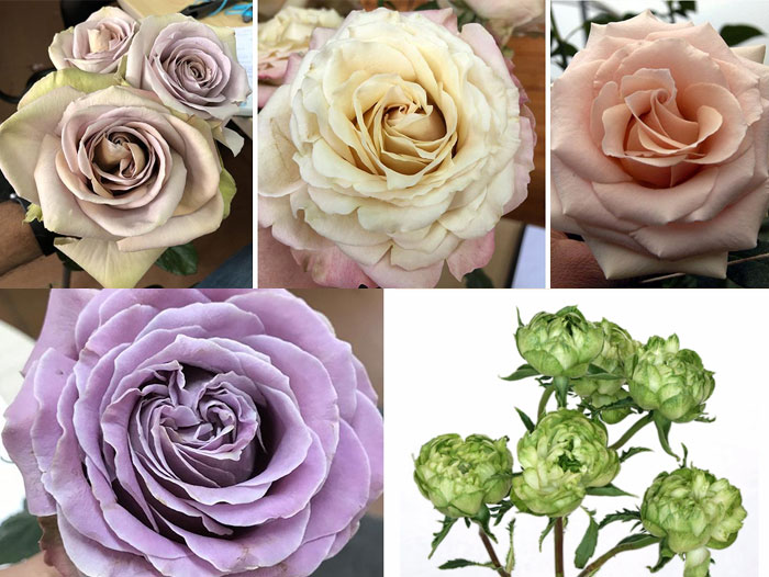 Deluxe Garden Roses Among the new releases are three varieties belonging our diverse Deluxe Garden Rose Collection. Quicksand, with its sophisticated and on-trend sand and cream colors, has a large, spiral-shaped bloom. Sahara Sensation is also new this year. She has a sandy, faintly golden color, and petals that unfold in scalloped waves with hints of pink around the edges. Commonly grown as a spray rose, the variety is grown at our farm in Colombia as a regular-sized garden rose. Finally, we have Amnesia, with her extraordinary tones that shift from dusty lavender to pale grey green. We began shipping this variety in late 2019.