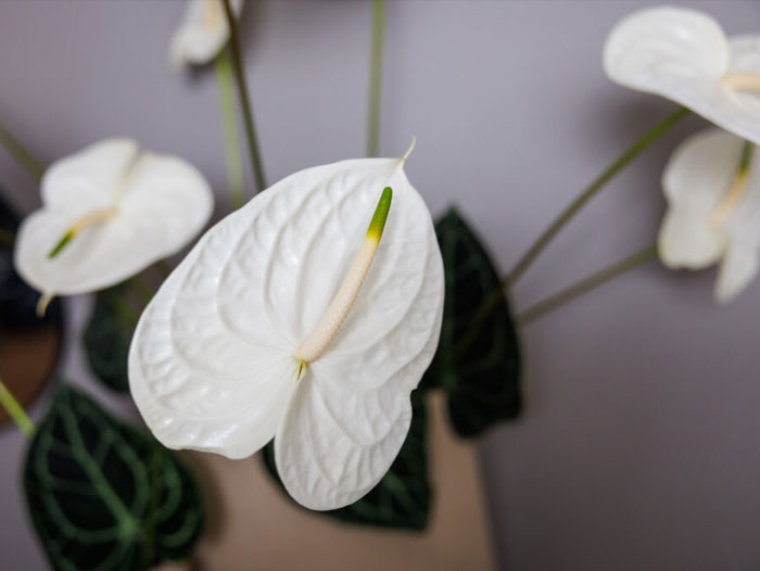 The Anthurium cut flower assortment has gained a beautiful white Anthurium. Graciosa® lives up to its name with its lovely, enchanting look. The association with the word gracious is obvious: stylish and graceful. The green and white spadix completes the picture.
