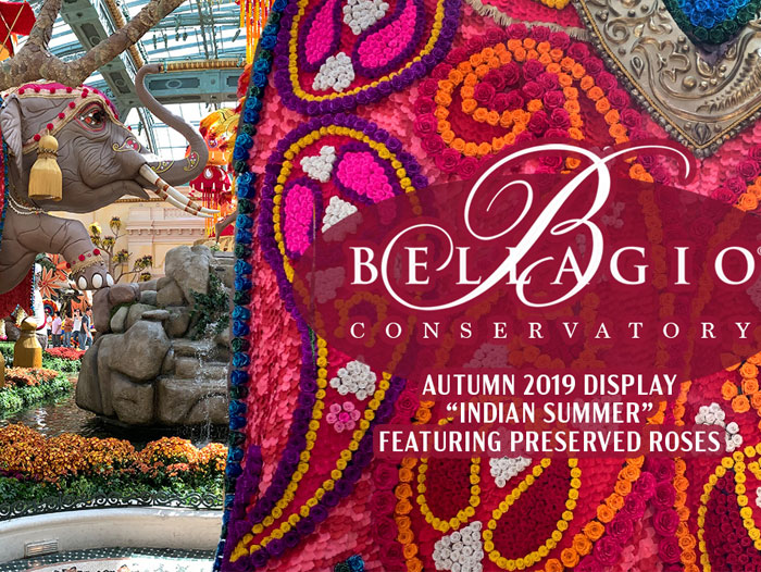 Preserved Roses have been taken to incredible heights with the Bellagio Conservatory’s Autumn 2019 display, “Indian Summer.” The impressive showcase features over 20,000 preserved roses from Jet Fresh Flower Distributors that have been used for their long-lasting fall exhibit.