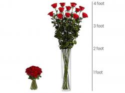 These roses are the largest roses in the world. At Best Roses Shop, customers can choose from either 3 ft or 4 ft tall roses. The stem length is guaranteed to be at least that long. As of right now, they are only available in red. However, customers do have the option to choose from bunches of 6, 9 or 12 stems.