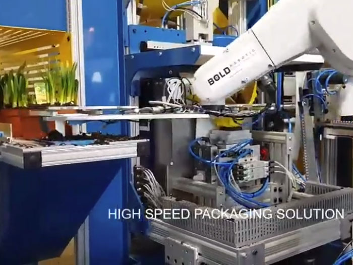 BOLD Robotic Solutions is a Canadian agri-machine designer and manufacturer located in Vineland, Ontario, Canada. BOLD focuses on engineering and developing automated solutions for the floriculture industry. The automated pot packaging cell developed by BOLD is designed to apply pot covers or mylar, as well as a unique UPC label and a sleeve to each potted plant using a single process, at a rate of over 1000 pots per hour.