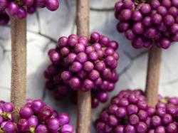Each berry begins with a flower. When the flowers have been pollinated – either by wind or bees – the fruit is created. The Callicarpa berries grow in wreath shaped sprays along the branch. This amazing way of growing is shown to its best advantage in a large vase. You can also combine the berries with other seasonal plants, such as Sedum and Asclepias.