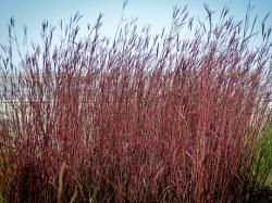 - Andropogon gerardii ‘Rain Dance’: Red-tipped foliage, deeper green than the species, turns totally maroon in fall. Red flowers on red stems.