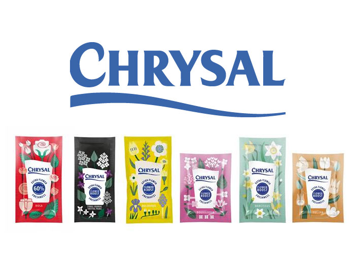 Now Chrysal’s special flower food comes in a new design sachet, a modern and trendy design matching your bouquets. On our website you can find a detailed flower list where you can find which flower food is most suitable for your flowers: www.chrysal.com