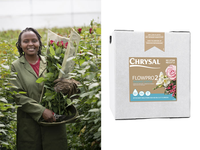 FlowPro 2 is a conditioner that eliminate the need for re-cutting before placing flowers in water. This way you can use your flowers directly after they arrive. FlowPro 2 has the same great results as our well known Professional 2 conditioner. The no-cut formula enables you to achieve significant savings on labor and operational costs and gives you the time to focus on the fun parts of your business with the knowledge that Chrysal is taking care of your flowers. FlowPro 2 comes in several packaging, for example our sustainable Bag-in-box, which contains 60% less plastic in comparison to our blue can.