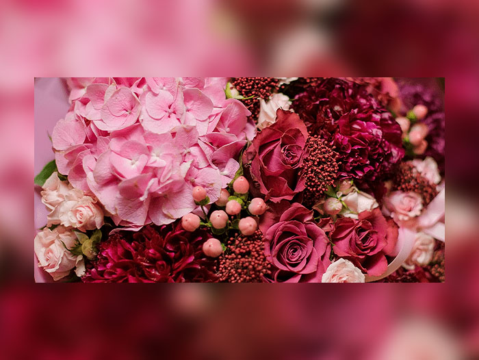You can create arrangements using bright pink roses and stock colors like hot pink, cream, and purple. You can also break up the pinks with bright orange or yellow ranunculus or pompons and a bit of greenery.