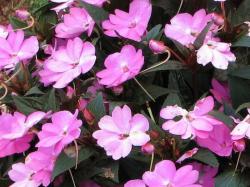 SunPatiens is a cross between a wild impatiens species and New Guinea impatiens. SunPatiens foliage is very similar to that of the New Guinea type as are its flowers, with the long spurs characteristic of New Guineas. Although promoted as full-sun plants that can also handle shade, I would think they would probably grow best in half-day sun since Valley heat can be brutal even for sun lovers.