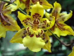 Oncidiums sold for the home market put on a colorful show that's different from the Phalaenopsis orchids that consumers are used to seeing. Phalaenopsis orchids have broad, flat leaves and produce perhaps a dozen large flowers in white, pink, purple and a variety of mottled colors (including a jarring blue that's the result of a dye). Oncidium orchids, on the other hand, typically have thin leaves and produce long, branching sprays of numerous, small yellow flowers.