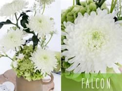 Powerful, large and firm! These are the characteristics that distinguishes the new white disbudded chrysanthemum Falcon. De large white flower has a beautiful green centre and long petals. Falcon is delivered in a net, so the flower is well protected. When put on a vase, Falcon continues its growth and reveals its large flower even more. Besides, this ultra-strong variety has passed every transport and post-harvest vase life test with ease.
