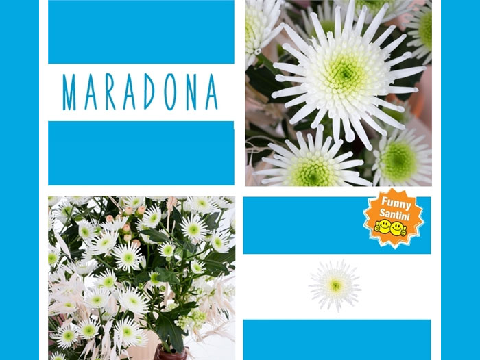 The little man with the iconic stardom, who unfortunately passed away last year. An honourable name for this new white santini by Deliflor. Maradona is a spider santini that makes it look like a true star.