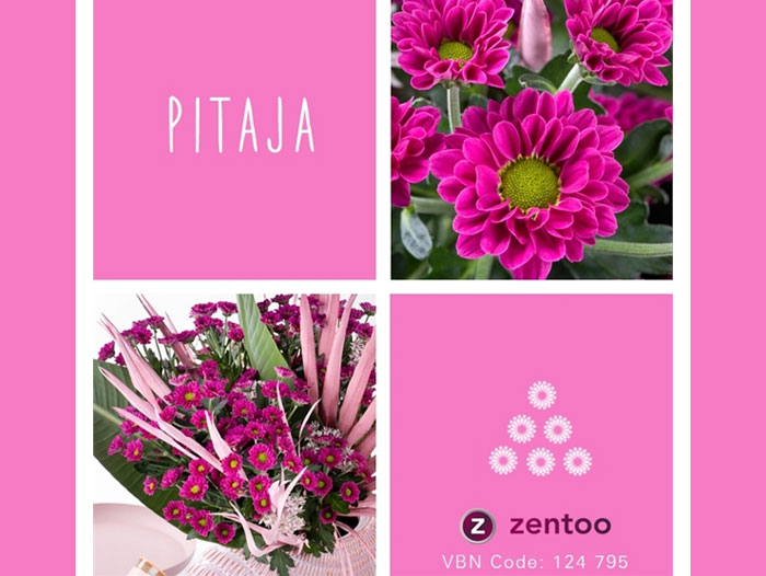 Deliflor Chrysanten introduces 2 new santini chrysanthemums together with Zentoo in week 32. The first one is the beautiful purple santini Pitaja. The intense purple colour of Pitaja makes it into a real eye-catching flower. Pitaja is rock solid when it comes to keeping the intense colour year-round. Also Pitaja is acclaimed for its branch structure. Again, an appealing addition to the santini Deliflor assortment.